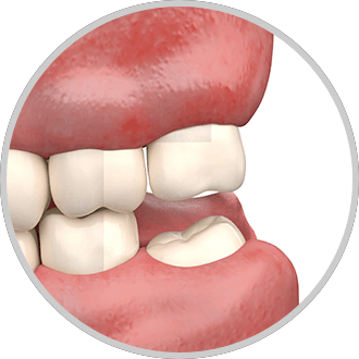 다른 치아와 달리 눕거나 잇몸 속에 매복되어 있는 경우가 많습니다.